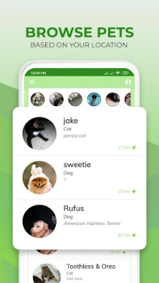 Browse through the pets App and search for all available pets near your location. Once you find your cutie, see the photos and description regarding that pet. If you are interested in the pet, contact the owner/poster of the info and negotiate the transfer of the pet.