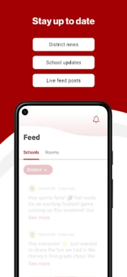 DISTRICT UPDATES In the Live Feed is where you’ll find updates from the administration about what’s going on in the district right now. Whether that’s celebrating a student’s success, or reminding you about an upcoming deadline.