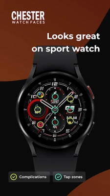 • Interactive tap zones allow quick access to fitness and activity stats.