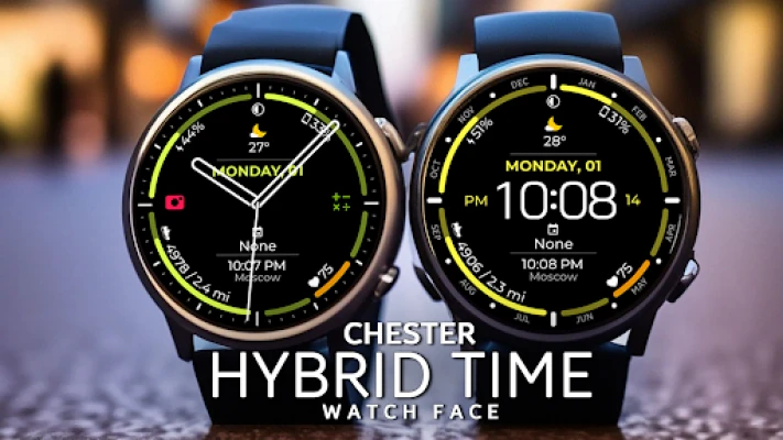 Hybrid watch face for Wear OS, with more settings and information displayed.