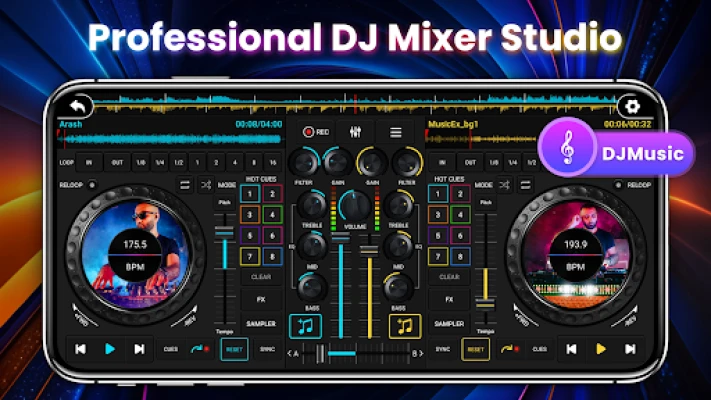 DJ Music Mixer Pro - Music Remix DJ is a powerful and fascinating Virtual DJ Music Studio with 3-band EQ mixer, FX, 10 bands Equalizer & Bass Booster, that can simultaneously play and remix your songs on two decks to create stunning effects. DJ Mixer Studio Pro use a design that simulates the real DJ console, you can slide the control Bar, rotate the knob, scrub the disc back and forth like in reality, giving you a vivid and interesting interactive experience without any ads. 💯