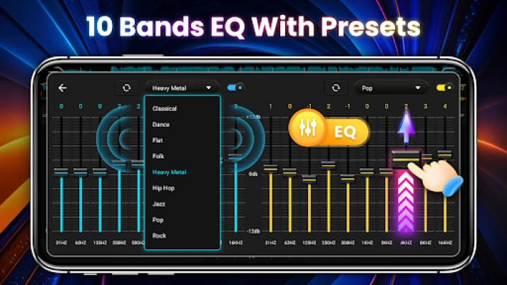 - Three quick EQ adjustment buttons and ten segment equalizer precise adjustment
