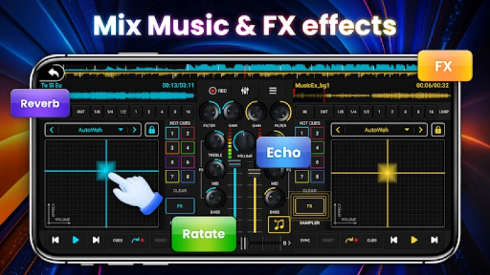 - Simulate a real DJ console for an intuitive and realistic operating experience