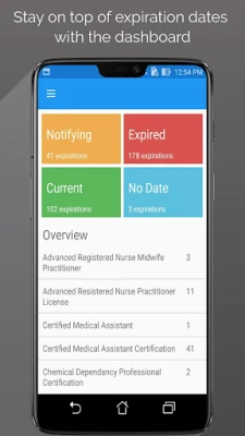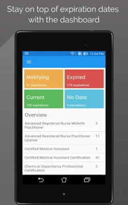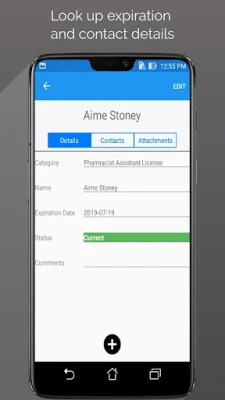 With Expiration Reminder for Android you can access your expirations, contacts, view and create attachments and add notes wherever your are - all changes are instantly synced to the Expiration Reminder web app.