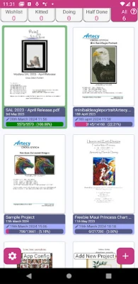 Projects can be organised into different categories to help track the progress of your stitching. Markup R-XP can also estimate the number of stitches in your chart and keep you updated on progress.