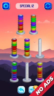 Nut Sort - No Ads: is the free-ads, brain teaser game about nuts and bolts color sort, designed for those who enjoy challenging nuts bolts puzzle. With a simple and fun nuts and bolts color sort gameplay, bolt & nuts sort Games are guaranteed to quickly become your favorite pastime activity!