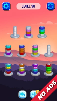Try to sort the colored nuts in the bolt until all colors are in the same bolt. As you proceed through the levels, you'll soon find out that there are lots of hidden challenges along the way
