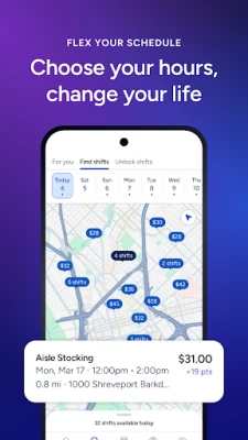 • SET YOUR OWN SCHEDULE – Work when and how much you want. You're only responsible for the shifts you choose. Search for short shifts—typically 2 to 4 hours—that fit your lifestyle, whether that’s evenings, weekends, or anytime in between.