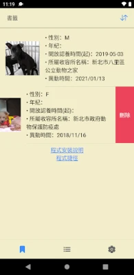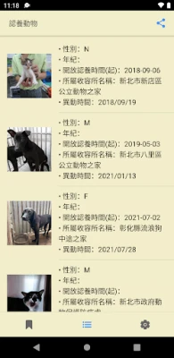 Taiwan Animal Adoption (TAA) app會隨機顯示10筆台灣的待認領養動物,點擊項目可開啟詳細資料。資料來源使用台灣之"動物認領養"開放資料: